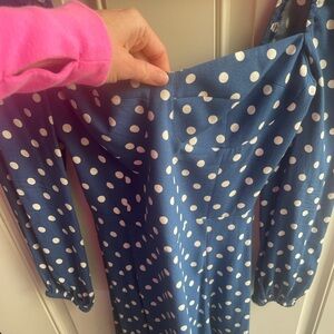 Reformation Light Blue Polka Dot Mochi Dress with Long Sleeves
