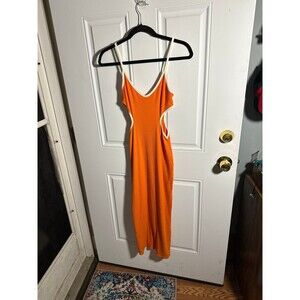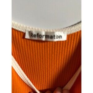 Reformation Lilou Midi Ribbed Dress Orange White Cut Out Size Small