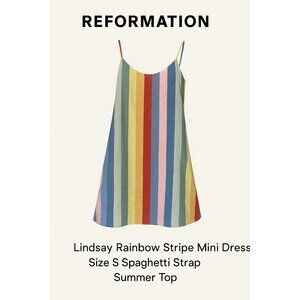 Reformation Lindsay Dress – Rainbow Stripe Reformation Lindsay Rainbow Stripe Mini Dress Size S Spaghetti Strap Summer Top