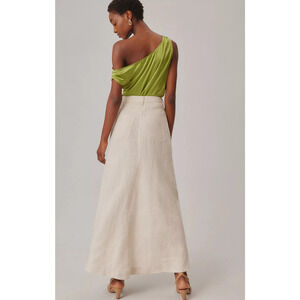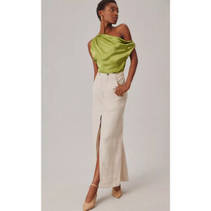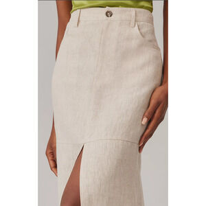 An airy take on an unforgettable favorite, the Reformation Linen Skirt features a high front slit, clean lines, and reworked panels for a striking impression.