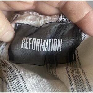 Reformation Linen Midi Length A line Dress Sz sm Stripes Back Tie Strapless