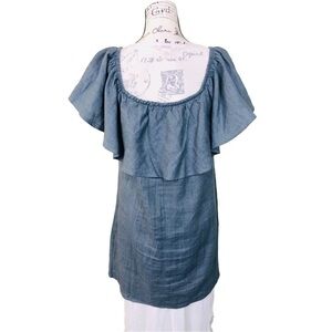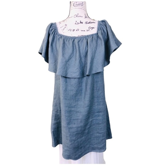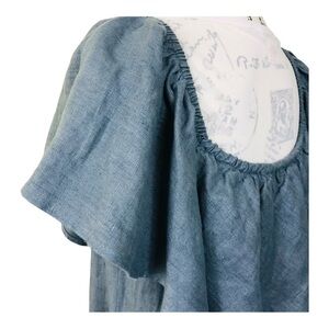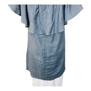 Reformation Linen Ruffle Mini Dress Size Medium Blue Square neck Lightweight