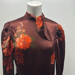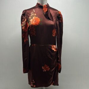 Reformation Livie Mini Dress Floral Print Long Sleeve Pure Silk Red New Size 6