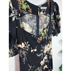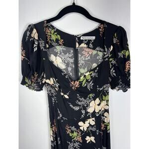 Reformation Luciana Black Floral Midi Dress Side Slit Puff Sleeve Flowy Romantic