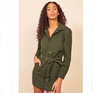 Reformation Lydia Mini Green Shirt Dress Size 2