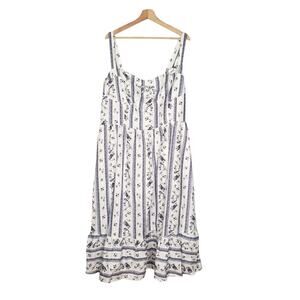 Reformation Maegan Linen Floral Midi Sundress Smocked Blue White Plus Size 18
