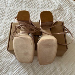This style runs slightly narrow. I am usually a size 8.5 but the 9 fit me well. Very comfortable shoe that I purchased for my wedding. I ended up wearing a gold shoe so these were never worn. There is slight wear on the tread simply from trying them on. I missed my return window so trying to resell. They are no longer available on the website. Really beautiful bridal or bridal guest shoes!