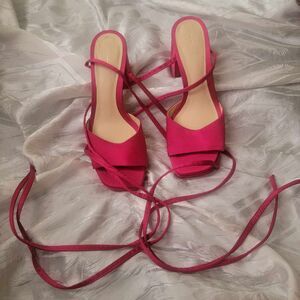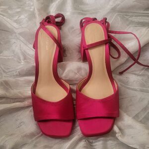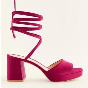 Reformation Magda Marisol Pink Silk Ankle Tie Platform Women's Sandals Sz 7.5