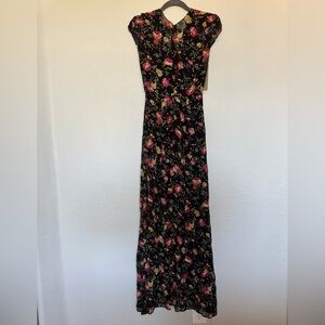 Reformation Maiden Dress in carondelet size 0. New with tags. Black with floral pattern. Long slit down front. Sheer fabric. Partially lined.