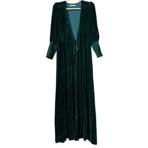 Reformation Mandi Dress Green Velvet Wrap Maxi Puff Sleeve Smocked Cuffs Size M
