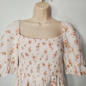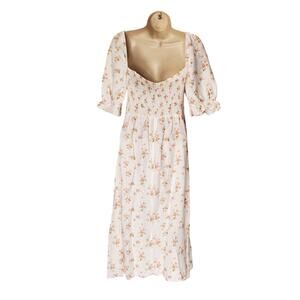 Reformation Marabella Dress Veronica 100% Linen Smocked Midi Cream Size Medium