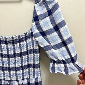 Reformation Marabella Linen Midi Dress Puff Sleeve Gingham Checkered Blue Size M