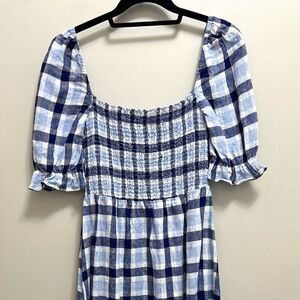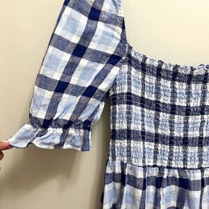 Reformation Marabella Linen Midi Dress Puff Sleeve Gingham Checkered Blue Size M