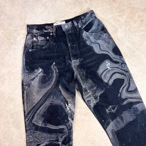 Reformation Marble Painted Cropped Distressed Black Raw Hem Jeans - 25 Waist