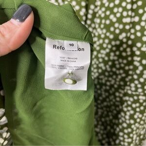 Reformation Marcy Dress Green Polka Dot Print Long Sleeve Size 10 Ruffle Trim