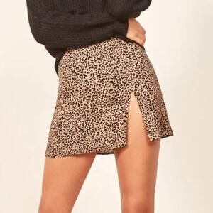 Reformation Margot Skirt High Slit Leopard Print Bengal Brown Black Womens Sz 2