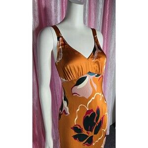 The Reformation Marguerite 100% Silk Midi Electra Orange Floral Dress in size Small is a stylish and elegant dress perfect for special occasions like weddings or parties. Made of luxurious silk with a satin fabric type, this sleeveless dress features a flattering V-neckline and a beautiful floral pattern in a vibrant orange color. The midi length and slip dress style make it a timeless and classic choice, ideal for the summer season. To care for this dress, hand wash only to maintain its lightweight and delicate feel.