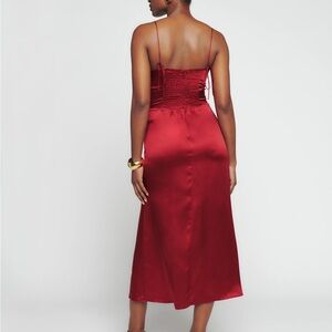 This stunning red satin dress is perfect for any special occasion. Its sleek design and vibrant color make it a standout piece in any wardrobe. Ideal for evening events or a night out.