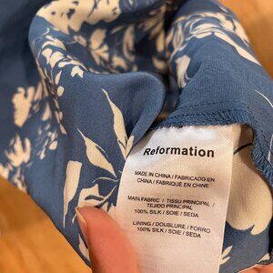 Floral Blue dress from Reformation. Used just once for a wedding, good as new. Material is Silk.