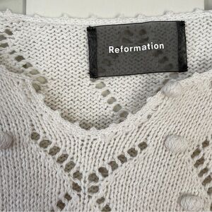Reformation Marie Pompom Eyelet Knit Sweater White Size Large but also fits me like a medium