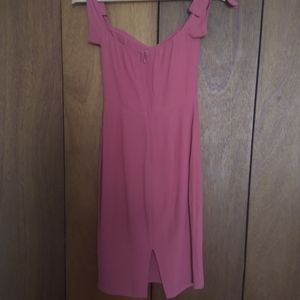 Good condition salmony muted pink body con / pencil dress with off-the-shoulder adjustable tie straps, invisible zipper and vent at back. Very flattering fit.