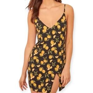 Reformation Marlowe Lemon Print V-neckline Adjustable Straps Mini Dress Size S