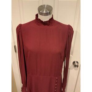 Reformation Maroon High Neck Stevi Valentin Victorian Dress Size 12