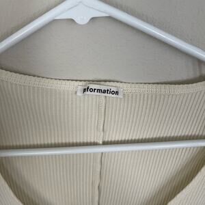 Reformation Marten Ivory Ribbed Scoop Bodysuit Buttons (S)