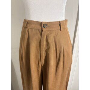 Reformation Mason Pants – Camel Pleated Wide-Leg Tencel Trousers (Size 2)