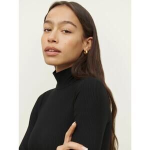 Reformation Maya Black Knit Long Sleeve Turtleneck A Line Mini Dress Size S