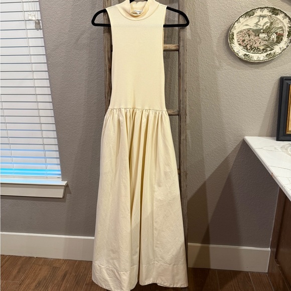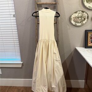 This elegant cream sleeveless dress is perfect for any occasion. Its timeless design offers a sophisticated look. Ideal for both casual and formal events.