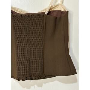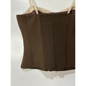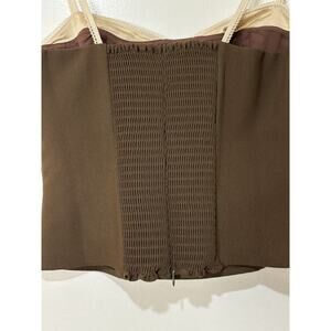 Reformation Melanie Lace Trim Crop Top Brown Cream Size 6 NWOT Sweetheart Neck