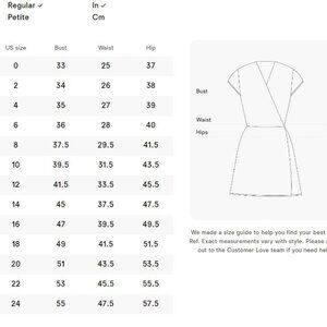 The model is wearing a size 0 and is 5'10", 23" waist, 35.5" hips, 32.5" bust.