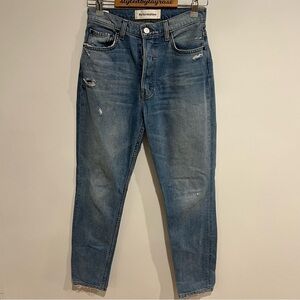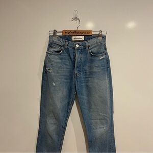 Slim-fitting jeans with a super-high waist flaunt your figure in non-stretch denim ethically and sustainable produced. A button fly adds a vintage vibe to this classic style.