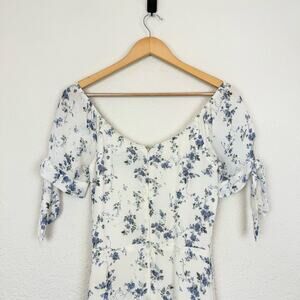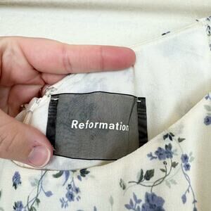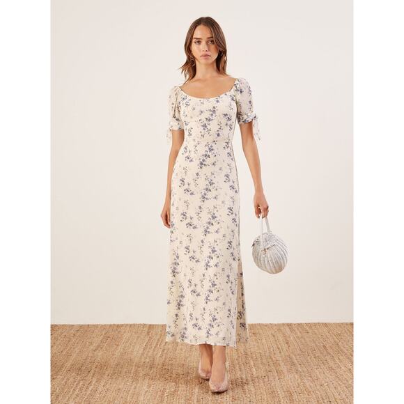 Reformation Meredith Maxi Dress in White Blue Floral Madeline Print