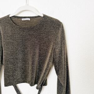 Reformation Size L Gold Metallic Sparkle Tie Front Long Sleeves Jupiter Crop Top