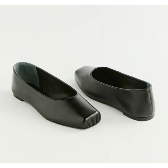 Reformation Mikayla Black Leather Square Toe Flats Sz 9
