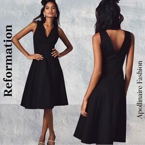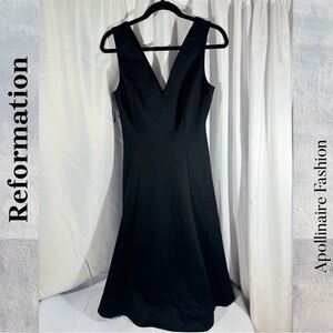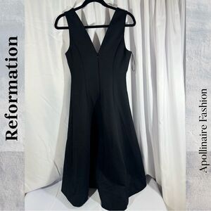 REFORMATION MIKAYLA FORM FIT MIDI DRESS IN BLACK SIZE SMALL NWT