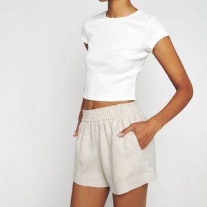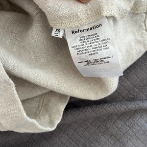 Super cute and comfortable but a little too small for me. Worn a couple times, good condition. Smocked waistband. 100% linen.