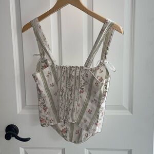 Reformation Minton Linen 100% Linen Floral Striped Sleeveless Top Bustier Sz 8