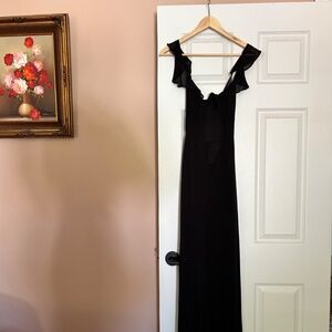 Sophisticated Reformation black jumpsuit with ruffle straps and tie back. Gently used. Size 2. 100% Viscose