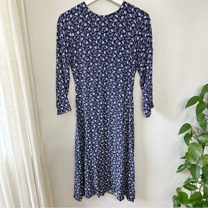 stains. This is a midi length dress with 3/4 length sleeves. The Moon has a high crew neckline, slim fitting bodice and easy fitting skirt.