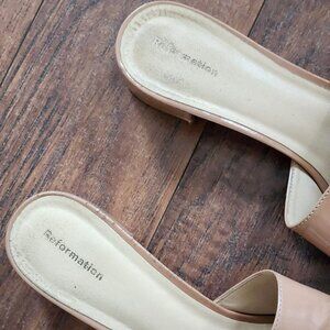 Reformation Mules Slide Size 9.5 Nude Patent Leather Open Toe Sandals Classic