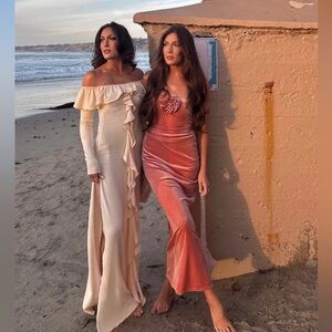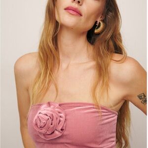 Reformation Adalynn Knot Two Piece Light Pink Velvet Set Outfit Skirt Top tube shirt set NWT