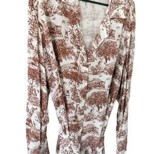 Reformation NEW Greek Printed Brown Button Down Shirt Dress