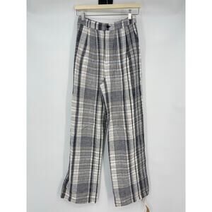 Reformation | NEW Vesta Plaid Linen Wide Leg Trousers Black White 0