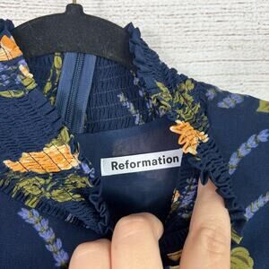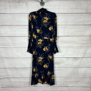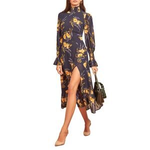 Reformation NWT Galena Blue Floral High Neck Slit Midi Dress Size 8