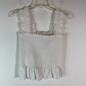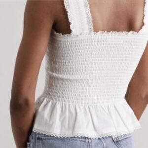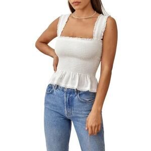 Reformation NWT Women's White Oakleigh Smocked Ruffle Sleeveless Top Size M