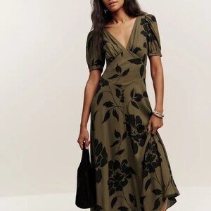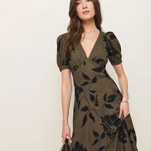 New with tags; never worn! How classic. Shop the Naira Dress from Reformation, a full-length dress with a v-neckline, puffed sleeves, and ruching at the bust.