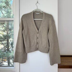 Reformation Nala Cotton Cashmere Cardigan Sweater in Stone Light Brown Small